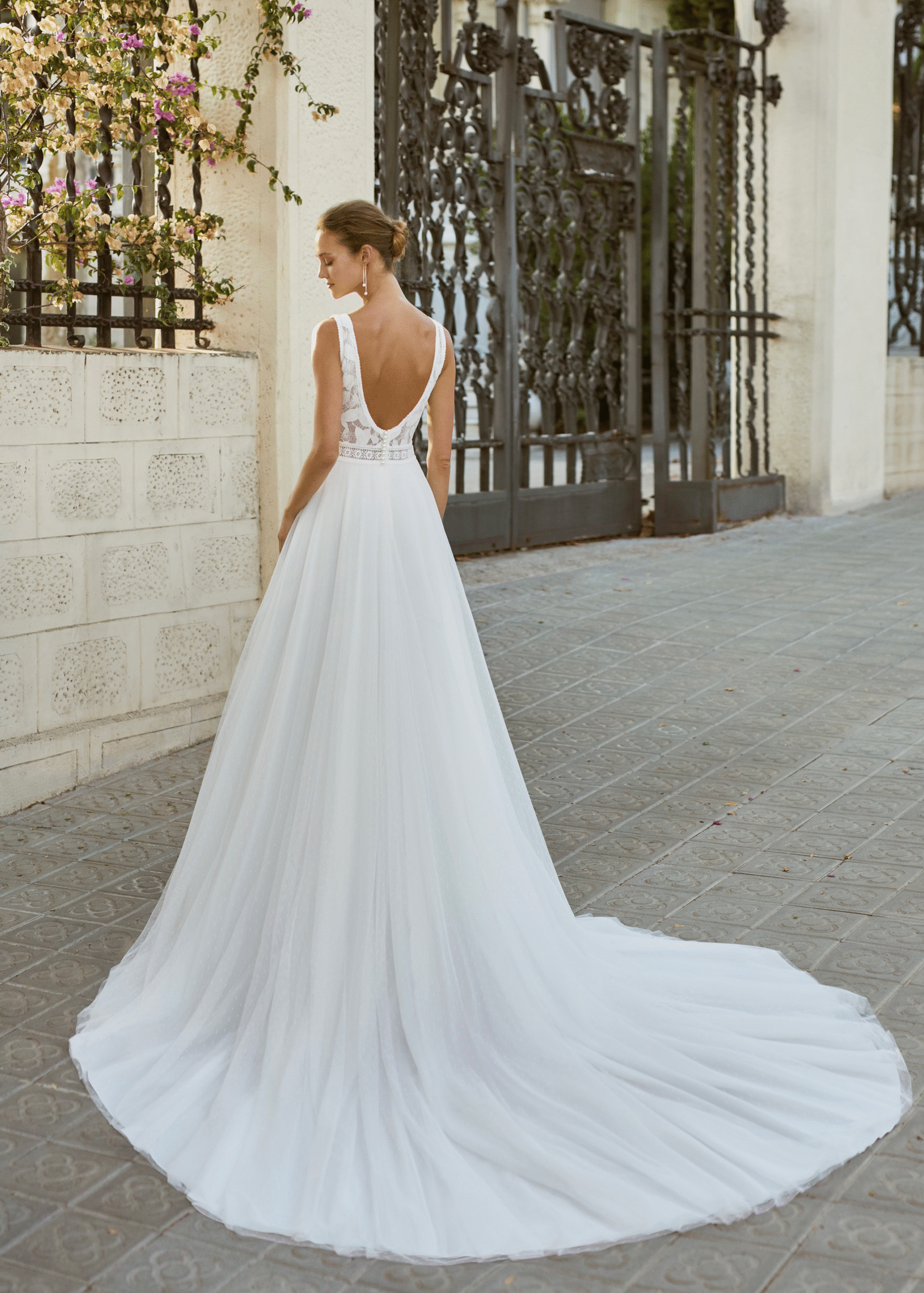 Une création parfaite pour celles qui rêvent d’une robe à l’élégance pure, pleine de douceur et de poésie pour leur grand jour.