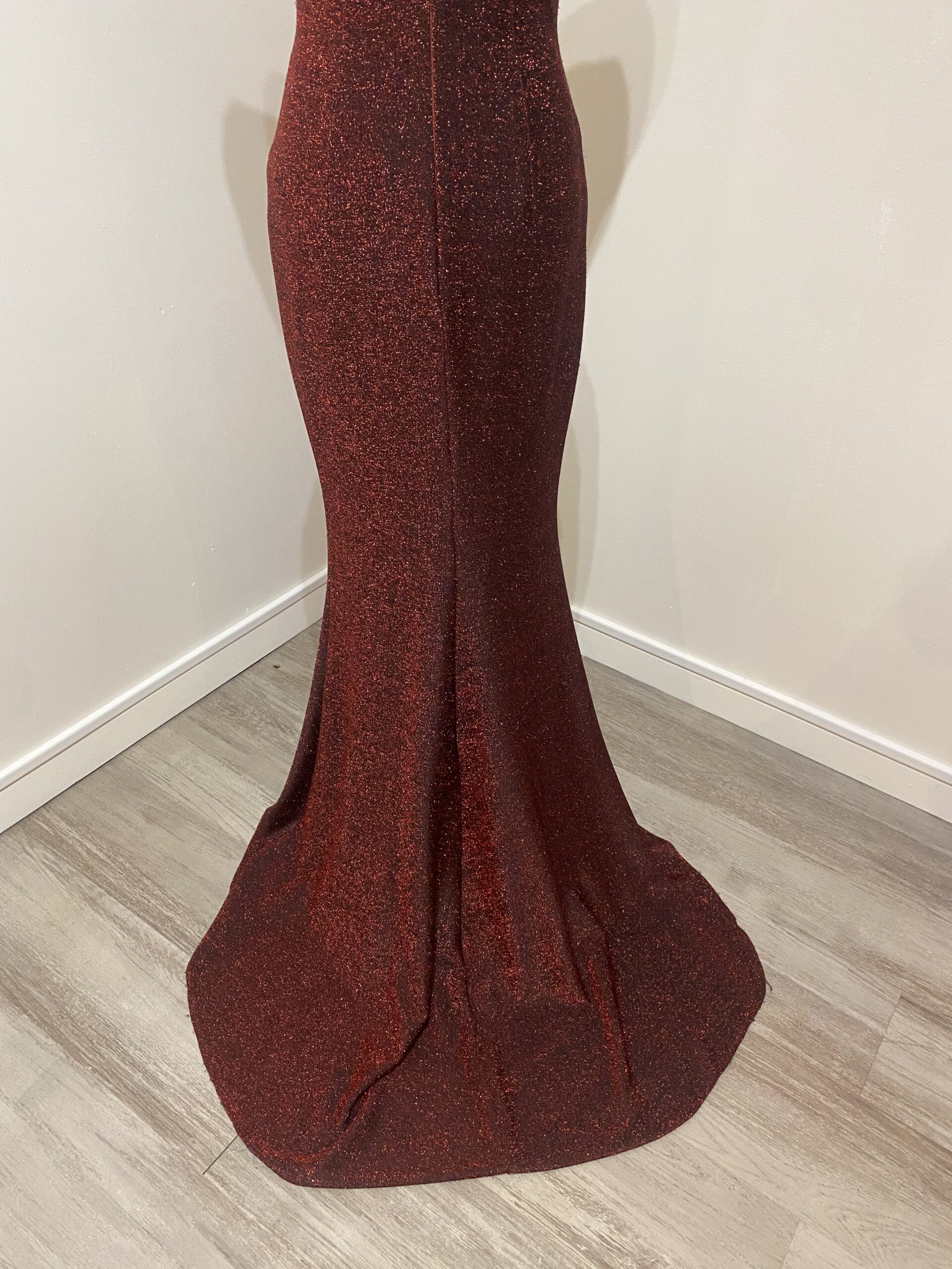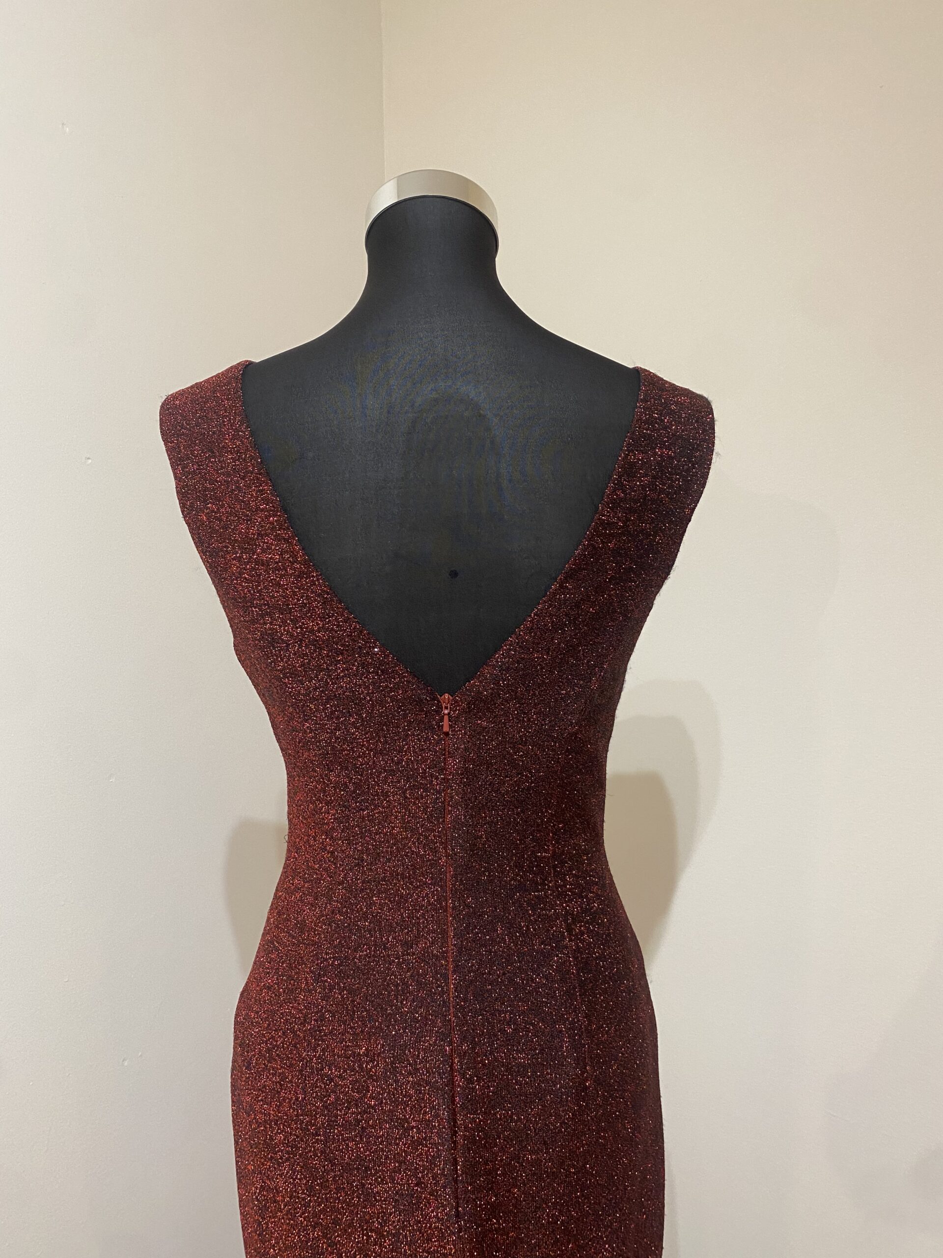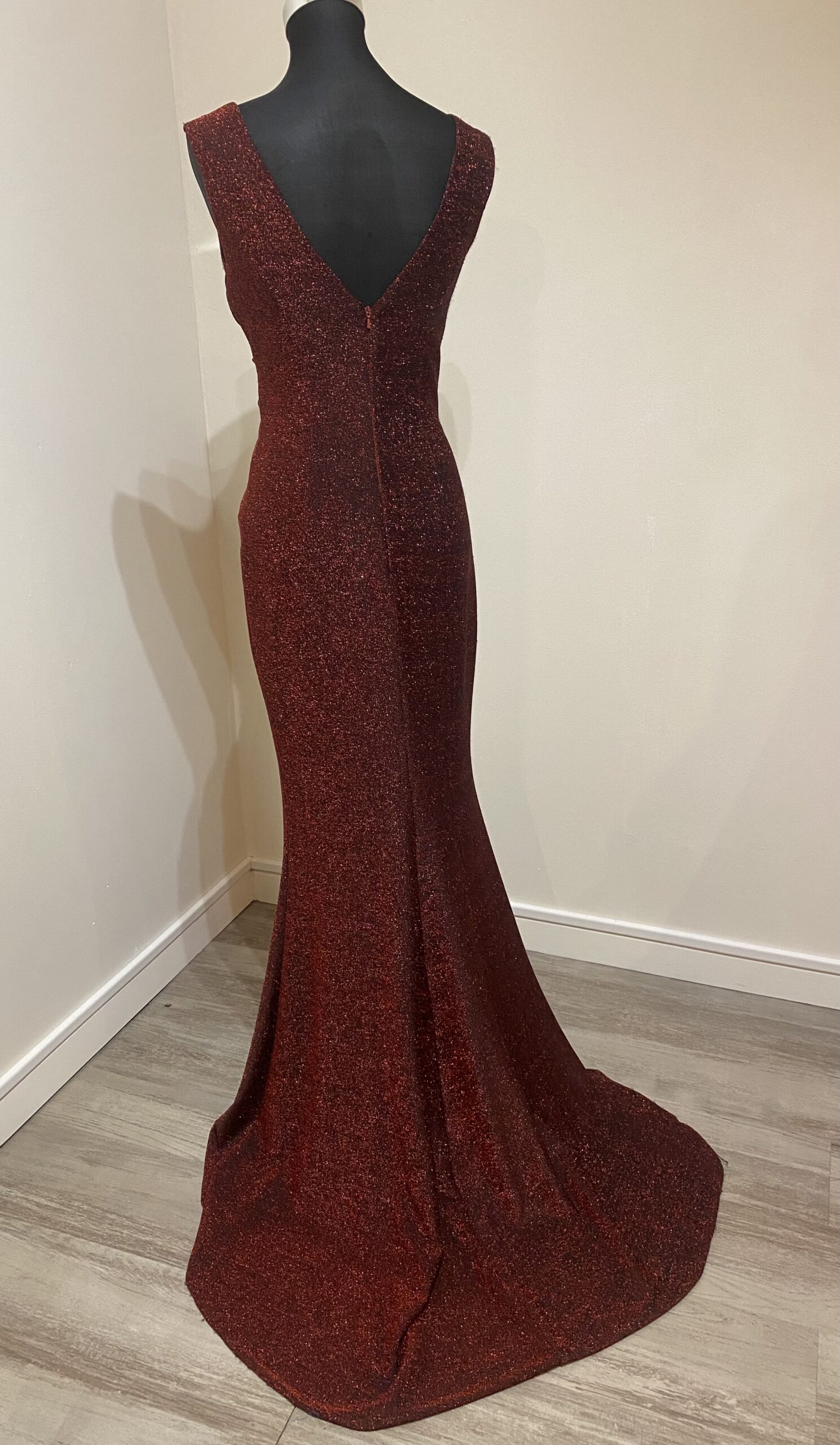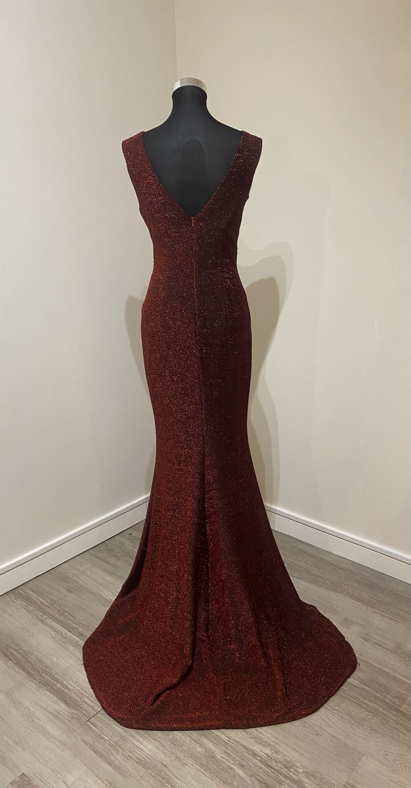 Sublimez votre silhouette avec cette robe de soirée d’exception, une pièce maîtresse alliant glamour intemporel et sophistication moderne. Confectionnée dans un tissu au fini délicatement pailleté, elle capte la lumière à chaque mouvement pour un effet spectaculaire. Sa coupe fourreau est magnifiée par un drapé savamment travaillé à la taille, créant un effet sculptant qui flatte toutes les morphologies. Le décolleté en V croisé apporte une touche de féminité raffinée, tandis que la fente latérale audacieuse dévoile la jambe avec élégance, facilitant une démarche fluide et aérienne. Idéale pour un gala, un mariage prestigieux ou une soirée tapis rouge, cette robe dans un ton bordeaux profond est la promesse d’une allure inoubliable.