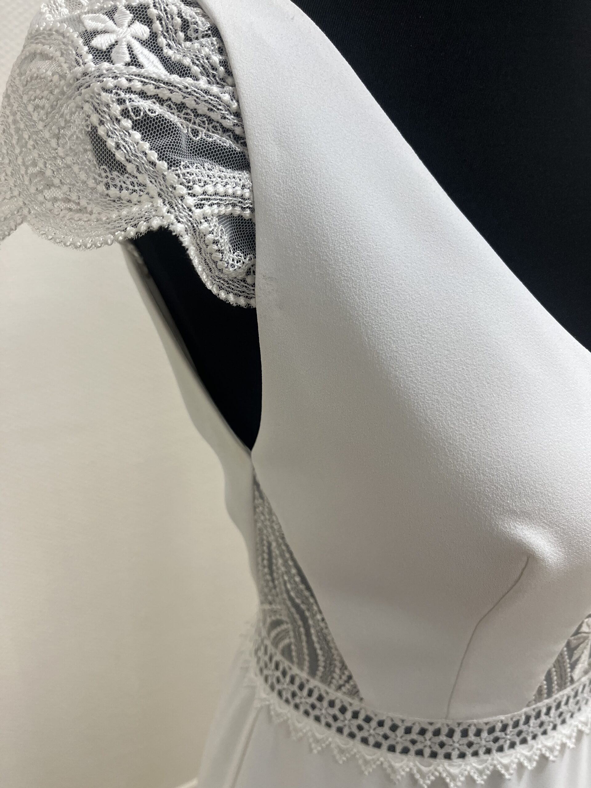 Parfaite pour une mariée en quête de sobriété stylée et de détails couture.